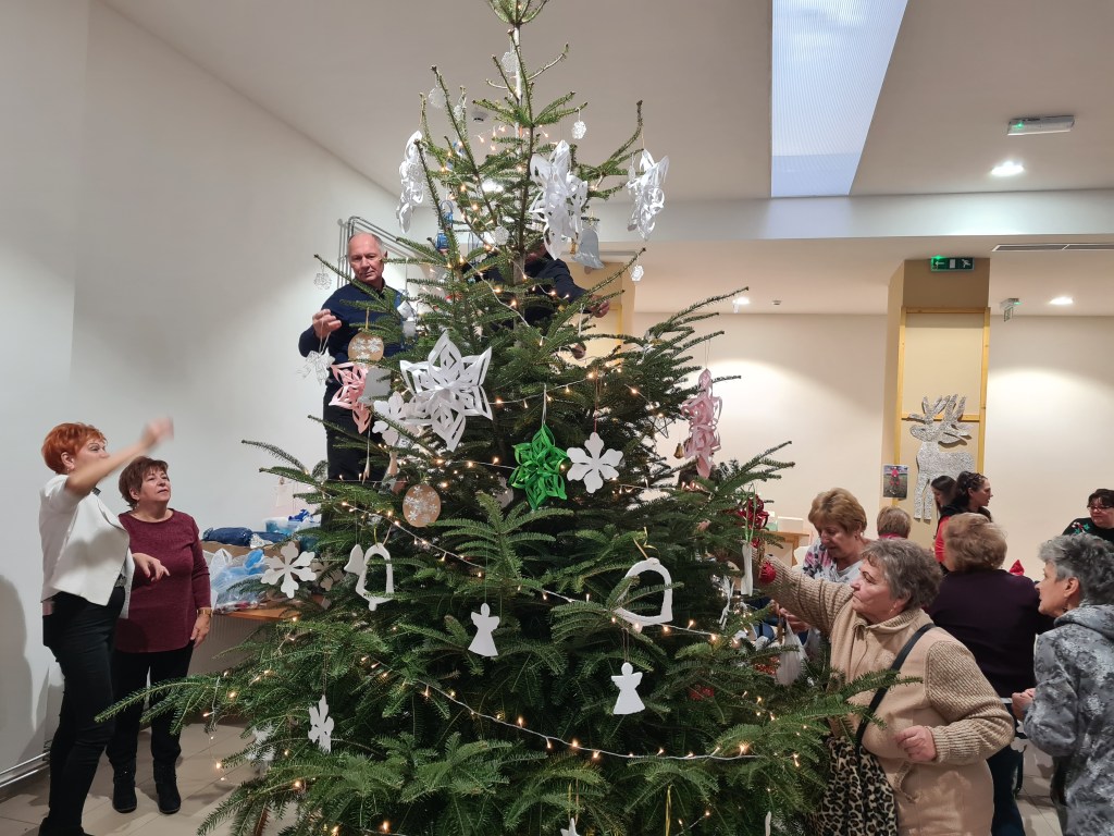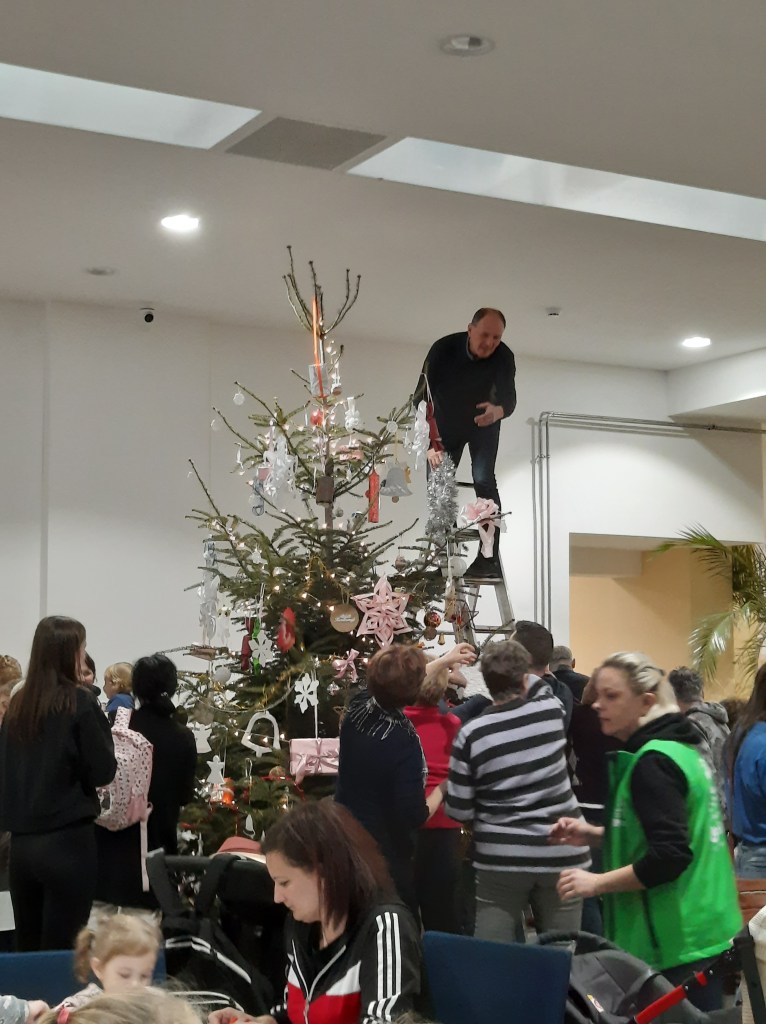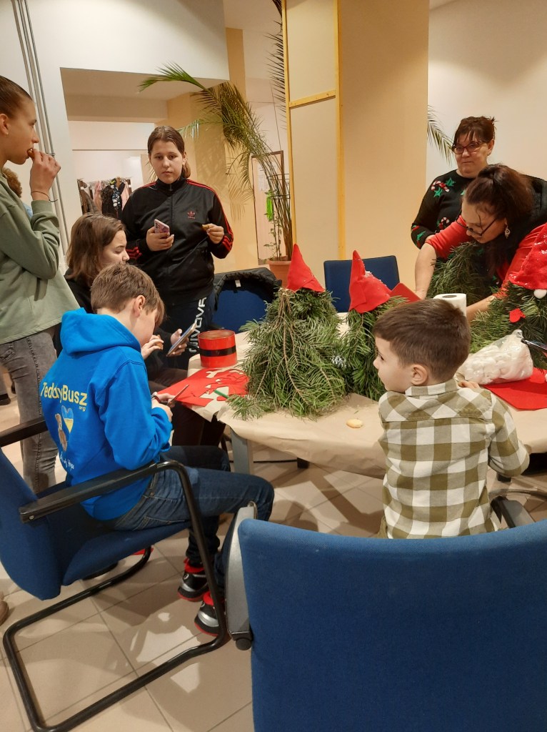 On Saturday we were up early to visit the Záhony Culture House where people gathered for a morning of community activities- decorating the tree (it seemed the older the person, the higher the climb of the ladder!) Gingerbread making, and many other crafts for young and old. We were able to share some of our Christmas treats from England, as many of the families we met have relatives either working for MÁV at the station, or are involved in the community response to help refugees.