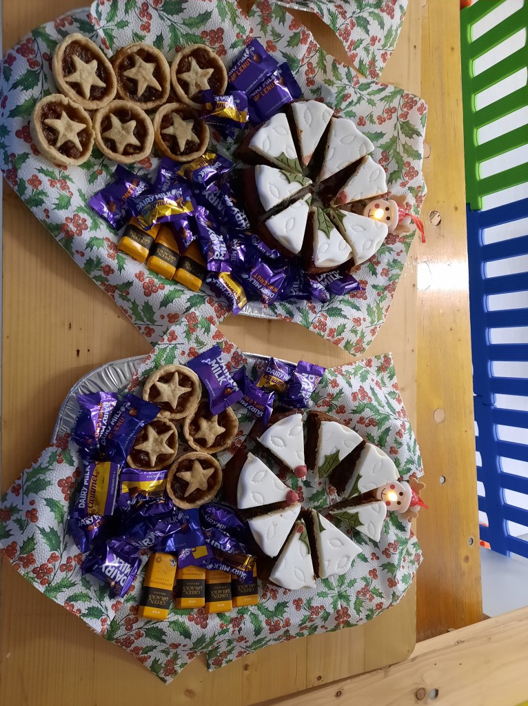 A vital part of this trip was to make sure nobody was left out, and as best we could in the time we had we shared a little seasonal joy with as many people as possible. We prepared platters for the hard-working ticket office staff, train cleaners, station cleaners and train control and train crew office who were busy working and couldn’t attend the festivities. These even included home-made mince pies, transported all the way from our home kitchen in Weston-super-Mare, and a box of home-made christmas shortbread from one of our friends in Cheddar.