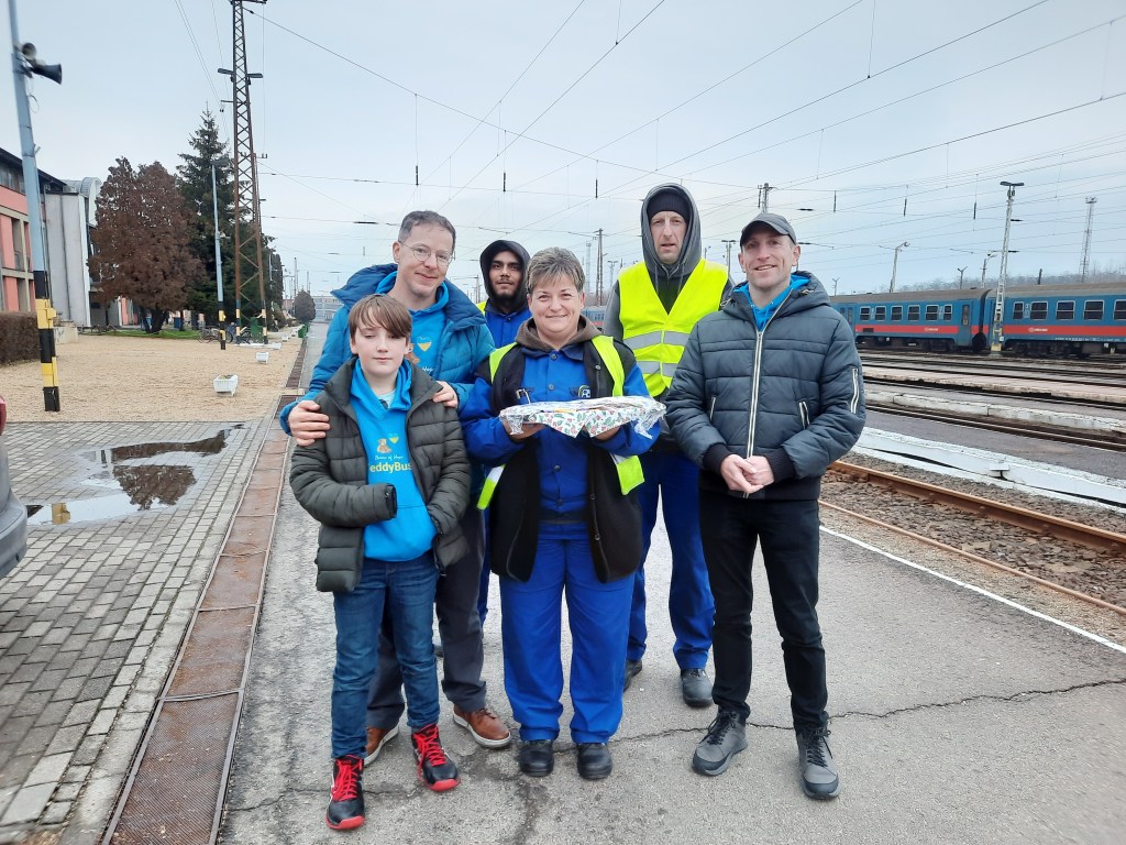 Finally, we met Dr Tatjána Erdélyi again and handed her the bulk of the Christmas cakes and puddings, along with all the wonderful knitted bears and – new this time – knitted glovepuppets (to keep small hands warm as well as give a little pleasure), to distribute in the coming weeks in Ukraine. Her missions have ramped up a lot since power shortages and temperature drops have doubly affected even the towns just over the border from Záhony.